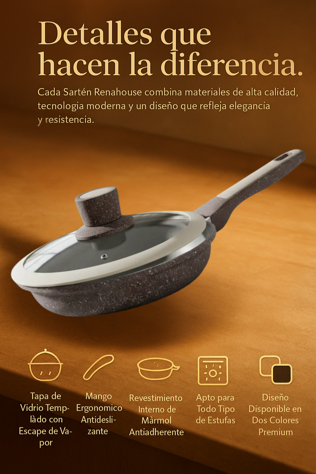 ✨ Sigue estos pasos y tu sartén Renahouse se mantendrá como nuevo por años.