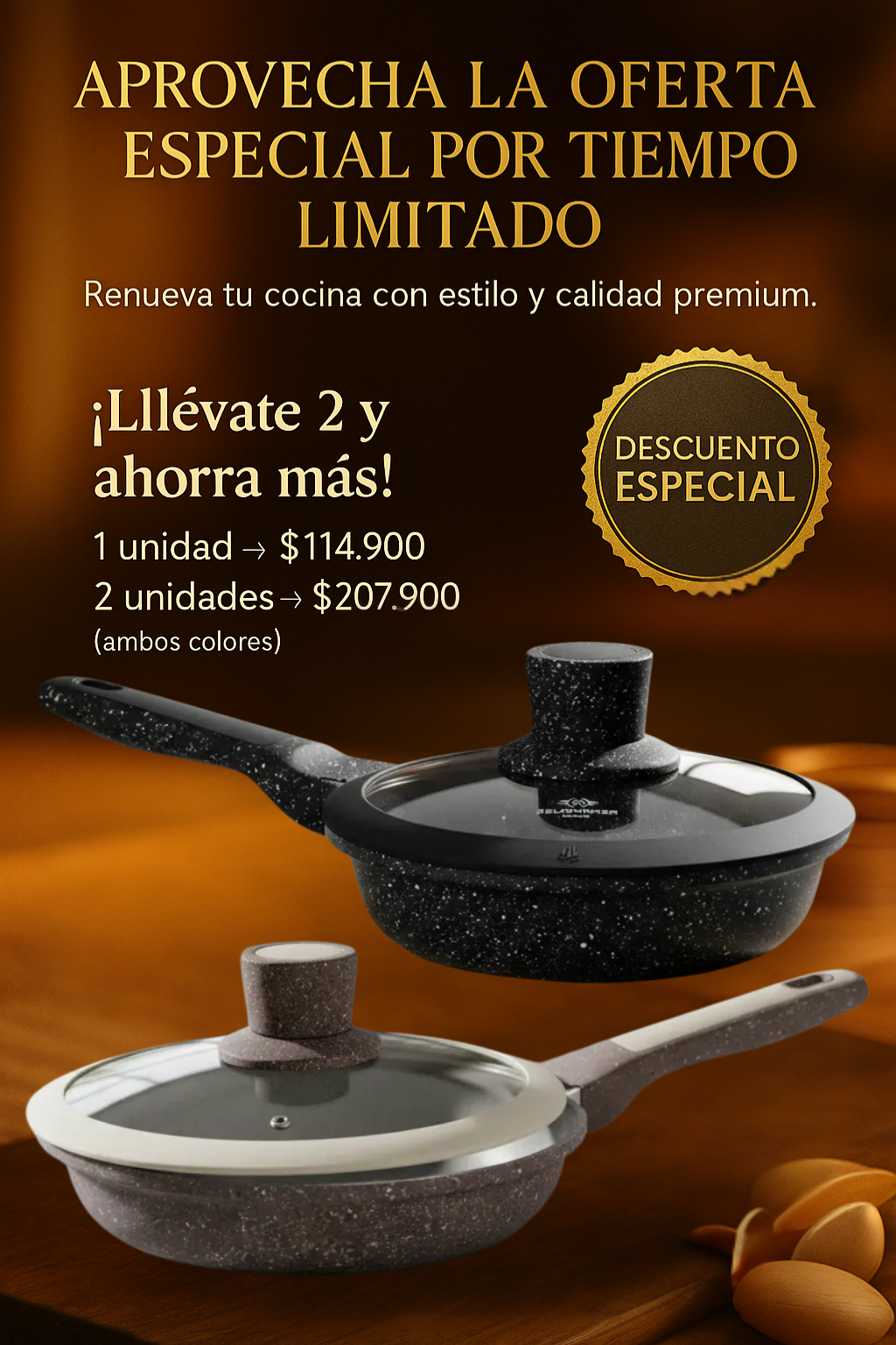 Su superficie de mármol antiadherente de nueva generación garantiza una cocción uniforme y sin esfuerzo, reduciendo la necesidad de aceite o mantequilla. Esto lo convierte en una opción más saludable y práctica para el día a día. Además, su acabado elegante en color negro o beige aporta un toque moderno a cualquier cocina.